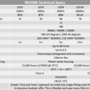 • درجة حرارة اللون : 3000 الى 6500 كلفن