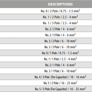 - 1.5mm – 4 Mm - 6 Mm – 10 mm – 16 mm –25 mm